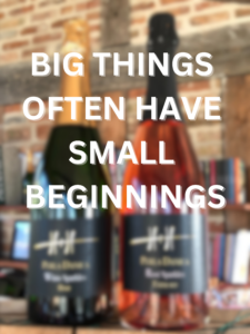 Det betyder, at vi nu, 10 år efter første spadestik – eller motorsavssnit – er i gang, og har gang i processen: Høst, vinificering, Sur Lie, degorgering og salg.